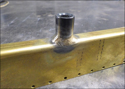 こちらは、ステンレスと真鍮の異種金属溶接です。アルゴン溶接機を使用して溶接しています。