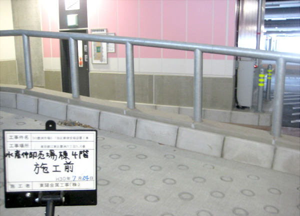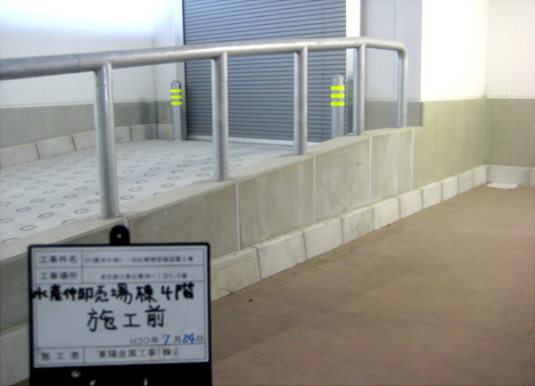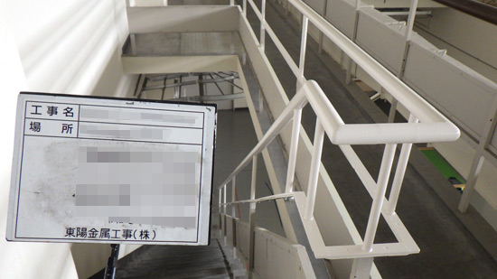 事務所棟の手摺の高さが足りないため、既存の手摺を嵩上げいたしました。