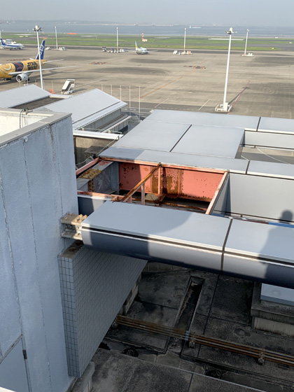 今回は、東京都大田区羽田空港にてアルミパネルの改修工事を行いました。