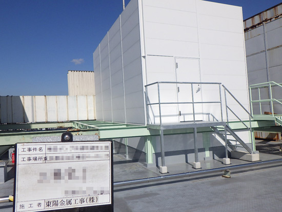 鉄骨階段も新設し防音パネルを無事再生することができました。